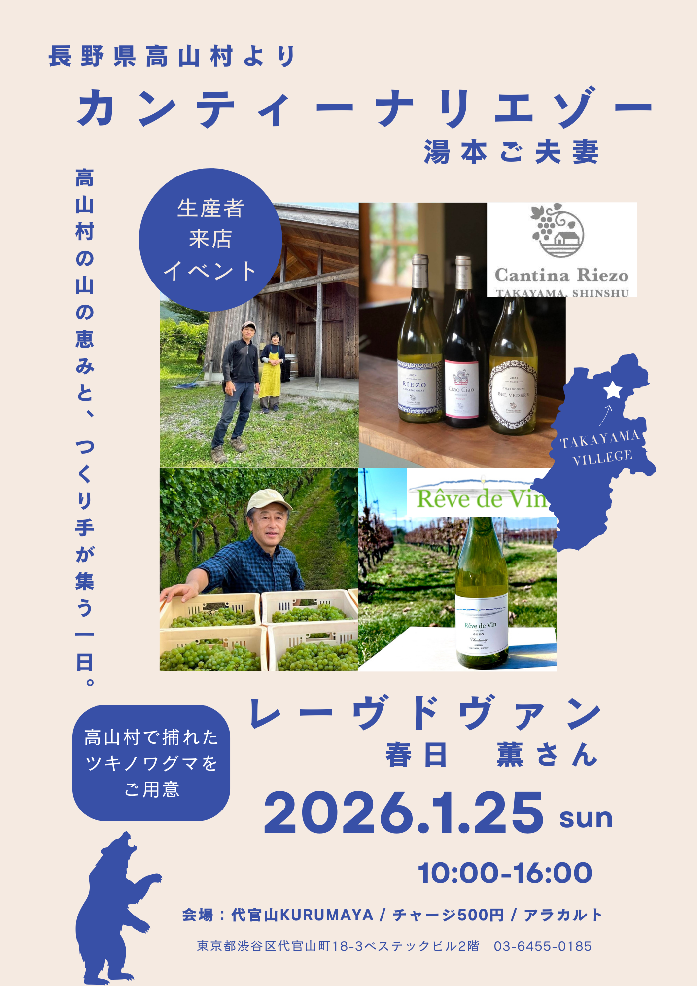 📣2026/1/25(日)の生産者来店イベント🐻🍷